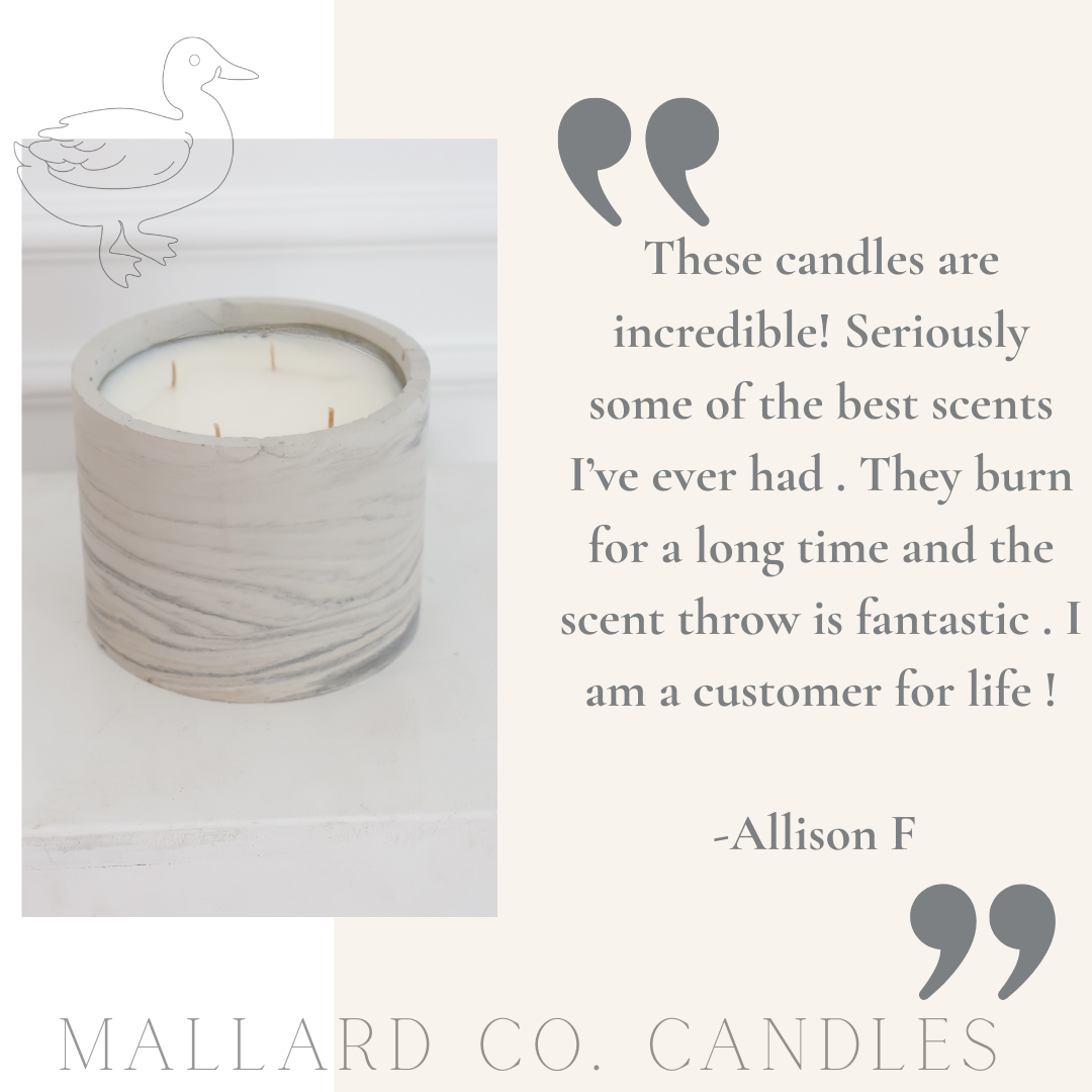 Elevate your space with timeless luxury through this 33 oz statement candle, hand-poured into a handcrafted, marble-look concrete vessel. Designed to impress, it features a premium soy-blend wax, phthalate-free fragrance oils, and four cotton wicks for an even burn that lasts over 150 hours.